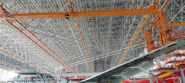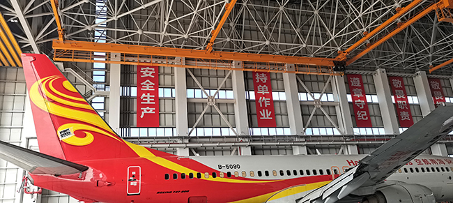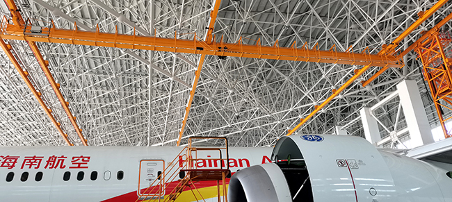 海口空港飛機(jī)維修工程有限公司于2020年8月向奧力通采購(gòu)??诿窈斤w機(jī)維修機(jī)庫(kù)用多支點(diǎn)超大跨度懸掛起重機(jī)8臺(tái),應(yīng)用于海口美蘭機(jī)場(chǎng)新基地機(jī)庫(kù)的建設(shè),于2022年3月正式交付投入試運(yùn)營(yíng),在中國(guó)南大門的自貿(mào)港中再添亮麗的一抹金色,奧力通成為海航飛機(jī)的最美守護(hù)神。