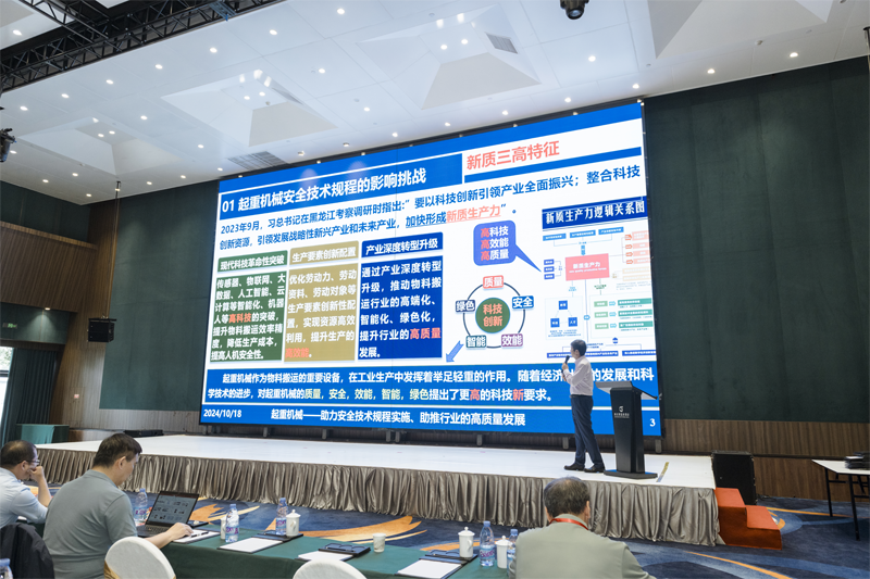 其次,本次會議開展了起重機械“智能化、數字化、綠色化機本質安全”高峰論壇的專題技術報告,其中奧力通起重機鄧海龍帶來《智能吊運讓世界更智能》專項報告,與各位代表共同探討如何讓起重機械前沿智能技術與安全高效、綠色轉型、雙碳目標創新理念加速融合,共同開拓企業及行業發展新動能。