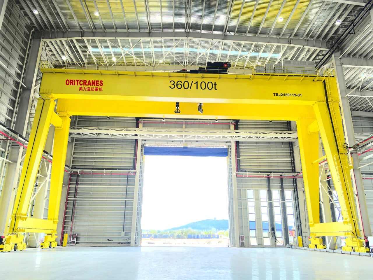 運達能源科技集團股份有限公司,作為行業內的標桿企業,多年來在新基地建設中采用奧力通的解決方案。2025年4月,溫州和昌新能源公司(浙江省溫州市)率先完成了新基地的起重機設備部署。緊接著,5月,阿拉善盟運達新能源公司(阿拉善左旗)也順利投產。這兩個新建風電主機基地,分別位于溫州海上風電和阿拉善路上風電領域,均采用了奧力通提供的大噸位龍門起重機設備。