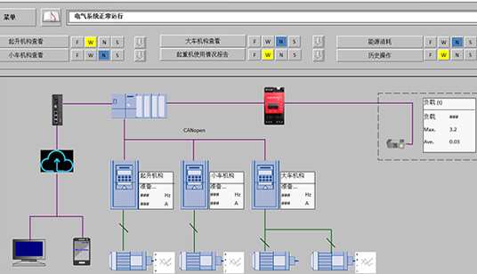 遠程監控: 通過物聯網遠程管理、實時掌握智能起重機運行狀態,實時顯示各機構運行參數、損耗、剩余壽命。無論身處何方,通過授權的遠程診斷系統,均能實現遠程故障診斷和預防性維保,確保智能起重機處于良好狀態。