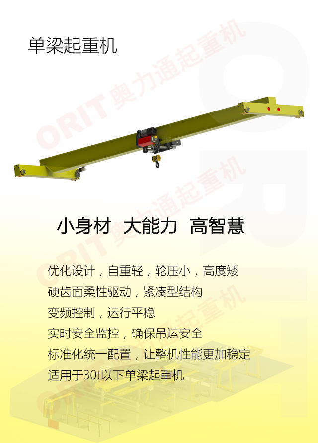 奧力通集起重機研發(fā)、制造、銷售、安裝、服務(wù)于一體,公司主要生產(chǎn)起重機、橋式起重機、門式起重機、雙梁起重機、單梁起重機、歐式雙梁橋式起重機、歐式單梁橋式起重機、歐式懸掛起重機、多支點懸掛起重機、歐式雙梁門式起重機、歐式單梁門式起重機、歐式半門吊、歐式壁行吊、歐式懸臂吊、歐式輕型起重機等通用標(biāo)準(zhǔn)起重機,以及全自動智能化起重機、冶金類起重機、防爆類起重機、航空專用起重機、核電站專用起重機、造紙專用起重機、電廠起重機等特殊專用起重機。