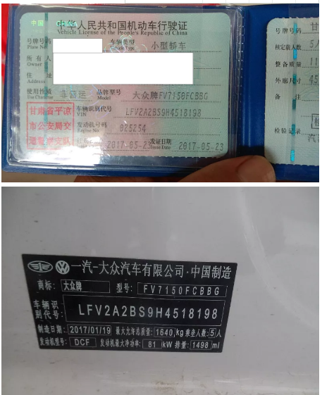 2、存放于甘肅省平?jīng)鍪熊嚰芴枮長FV2A2BS9H4518198,發(fā)動機號為025254大眾牌車輛一臺。